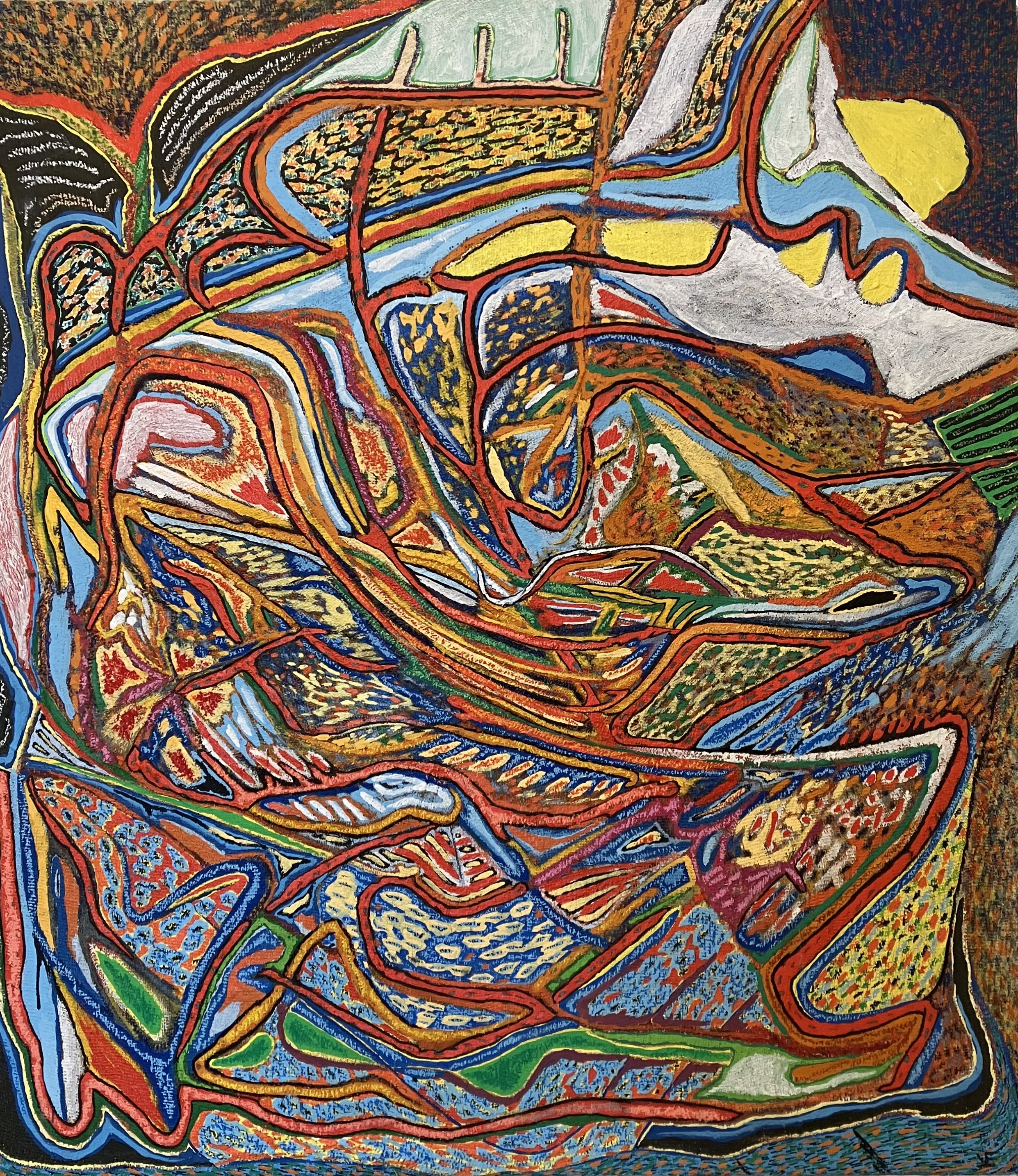 Often, I find my way and successfully “activate” the composition. Sometimes I do not and instead cover the piece in flat paint and start over. I do this because it can be easier to begin a painting when you’re familiar, when there’s both an established personal significance and lowered stakes in the sense that I know I can always start over.”