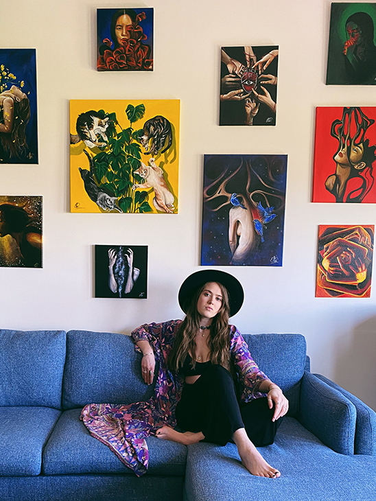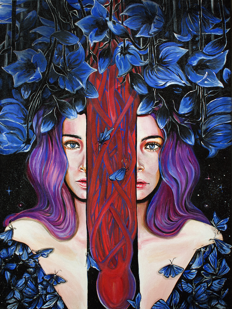 In my paintings, I erase the lines between what is internal and external. I tell the stories behind feelings and emotions, dreams and fears, strengths and weaknesses, truth and hope, love and freedom.