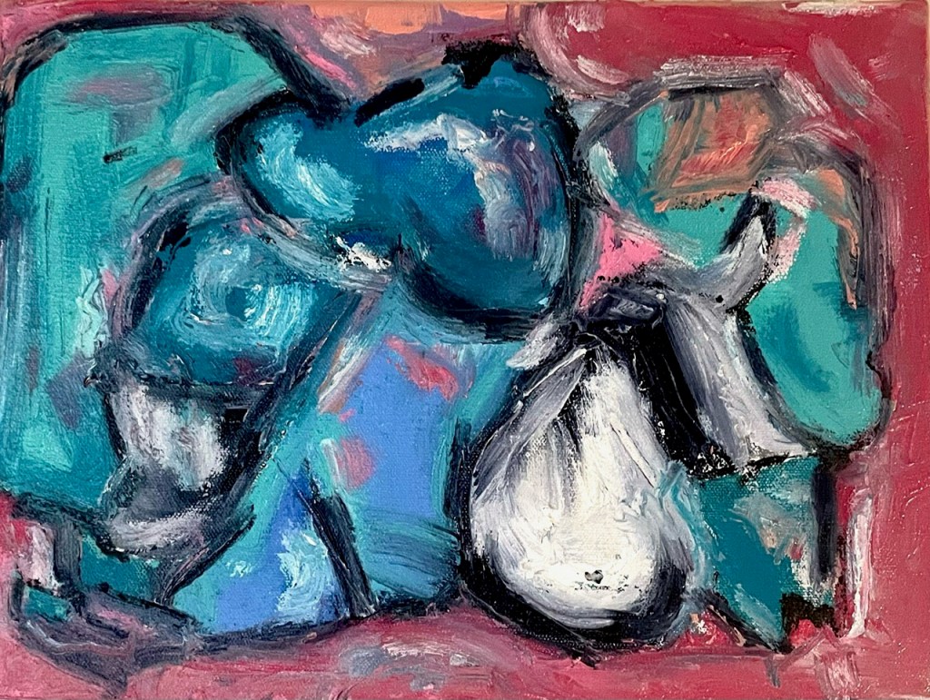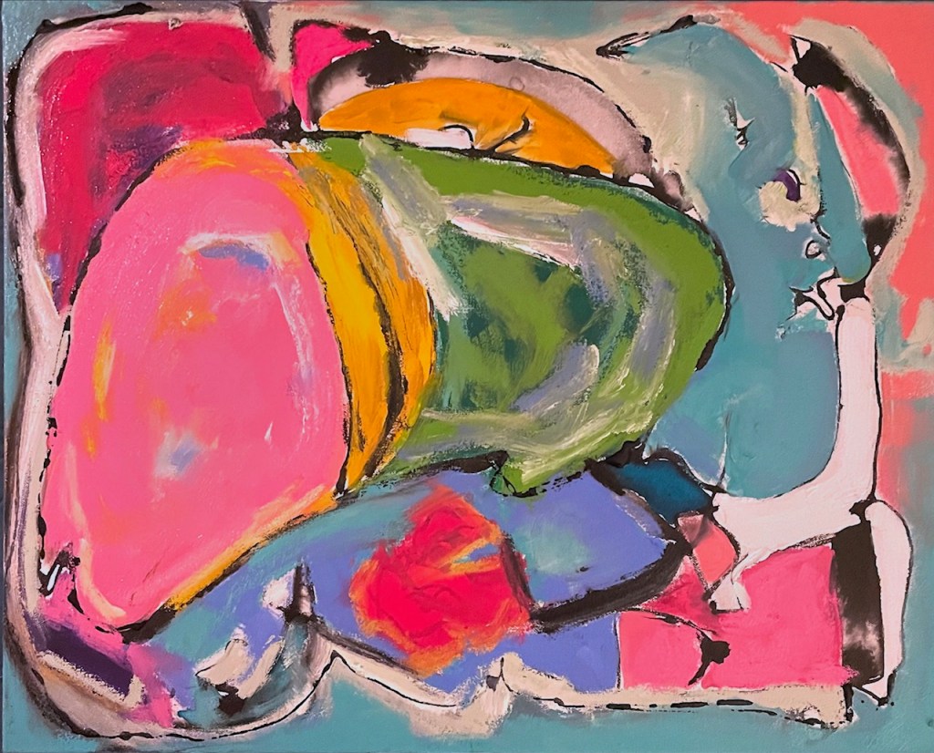 “I work off intuition when making a painting. To stray away from subject matter leaves the experience open ended and up to the viewer’s interpretation. I let the loose forms and vibrant colors provoke the necessary feeling. You get what you put in. Living in a southern city, I draw inspiration from the lush vegetation that exists alongside the rusted ruins of distant timelines. There is no end and no beginning, just paint and surface.”