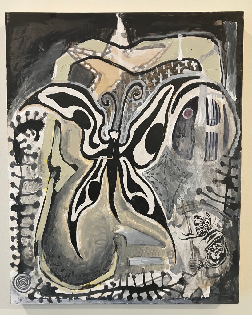 Zoe’s work in tattooing is also process based, relying on analog technology, repetition of symbols, and exclusively hand drawn designs. These tattoo designs are later embedded in her paintings, where they serve as recurring motifs.