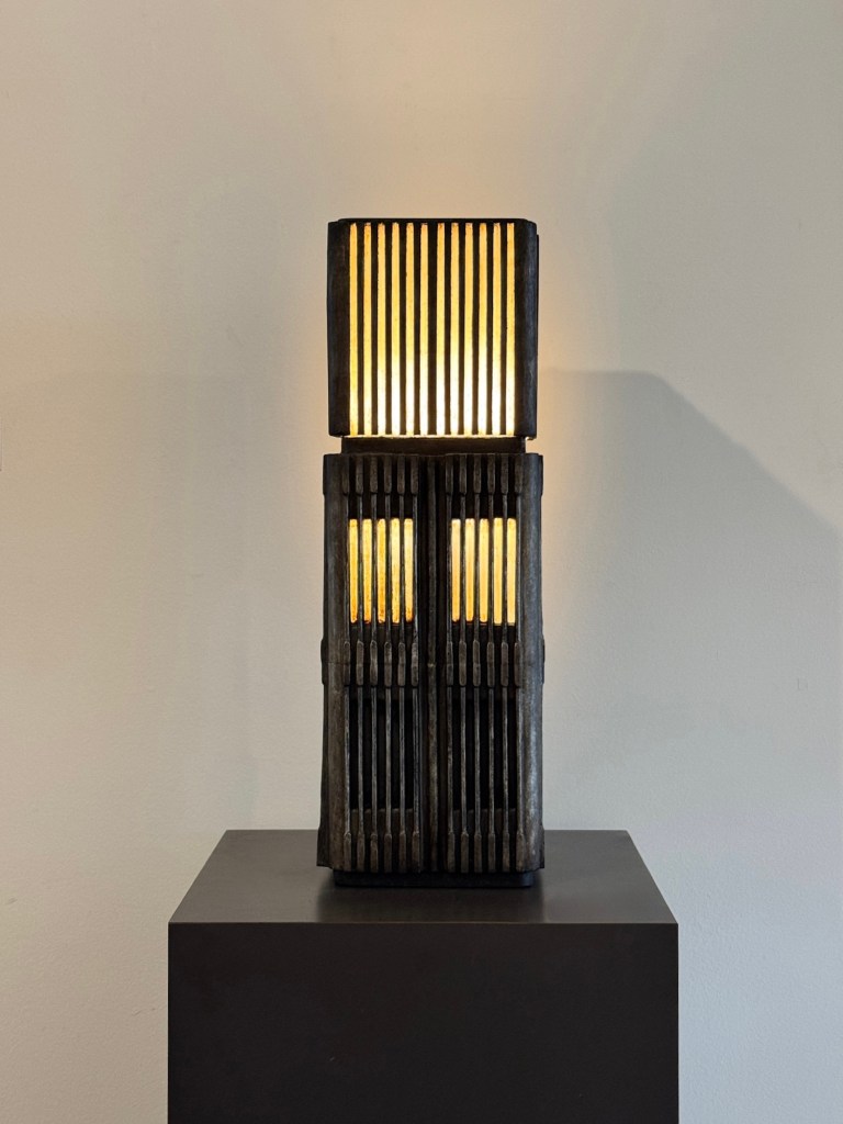 Luminous Oblivion is the pseudonym of an enigmatic Atlanta artist who builds exquisite light installations. Their work is shrouded in mystery and filled with esoteric meaning; their hanging lightboxes evoke the retro-futurist industrial aesthetic of classic sci-fi, while their lamps recall the structures of ancient temples and art deco design. These works are designed to entrance the viewer and draw them into strange new worlds, but they are also fully functional light sources, a perfect blend of artistic expression and practical craftsmanship.